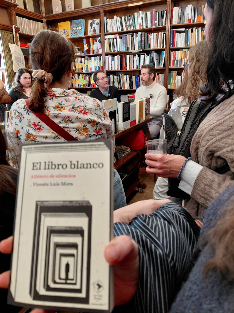 De este modo, en la tarde noche del viernes me había impuesto un silencio que, sin saberlo, me estaba conectando con El libro blanco. Alfabeto de silencios (La Caja Books, 2026), sobre el que iban a conversar Vicente Luis Mora, su autor, y Mariano Peyrou la mañana siguiente.