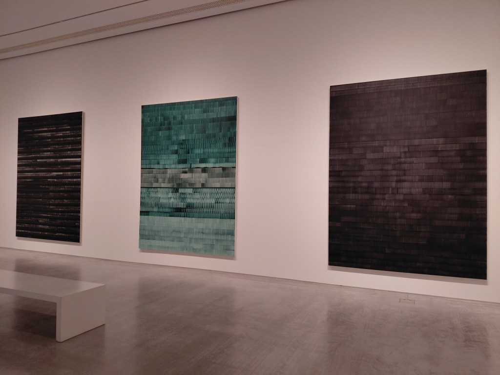 Aquellas imágenes me estaban interpelando, recordándome otras formas de mirar y escribir, mientras evitaba que mis dedos se lanzasen a teclear nada. Intencionadamente, opté por aplazar la escritura y que todo reposase en lo no dicho, a sabiendas de que tendré que volver a visitar la exposición para encontrarme con las palabras suspendidas. En aquel momento, necesitaba nutrirme con el silencio de salas casi vacías y de la obra abstracta, que permite escuchar lo que está por nacer.