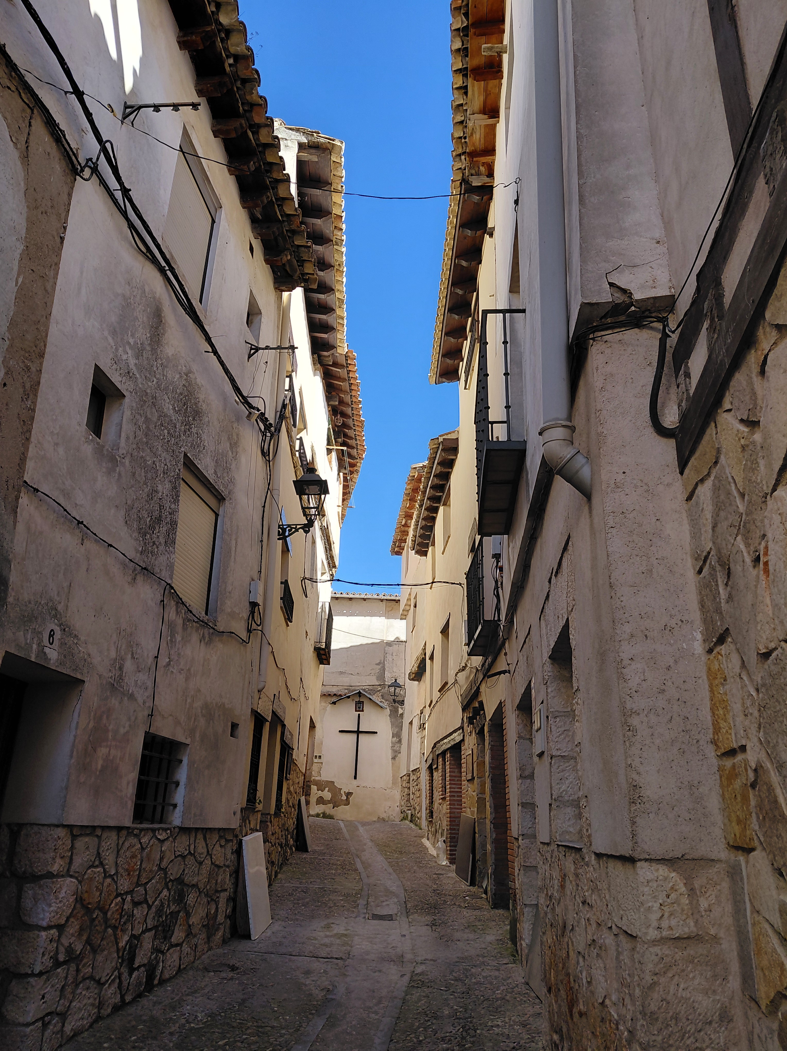 Al llegar a Pastrana nos recibe el sabor de la calma. Hemos evitado los días principales de Semana Santa y el pueblo late pausado, a la espera de su día grande y del regreso de quienes emigraron. Los visitantes somos pocos. En los bares de la Plaza de la Hora, algunos parroquianos comentan que anoche se quedaron sin luz durante tres horas, una avería que hoy se está arreglando y se ha convertido en la noticia local.